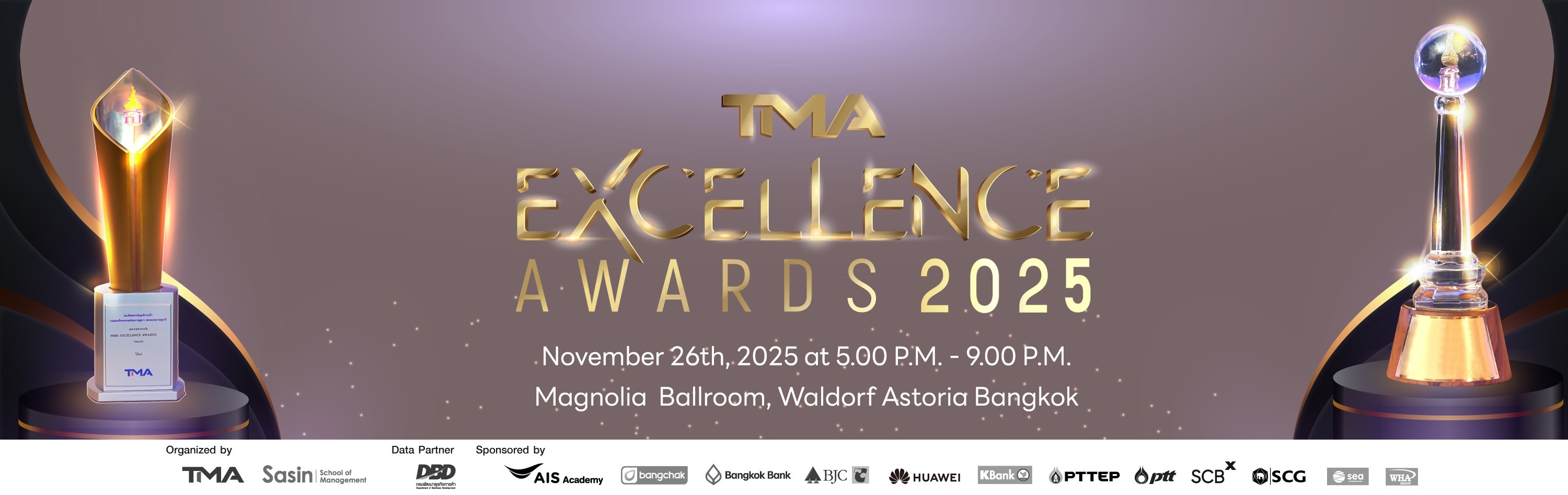 183 TMA Excellence Awards 2025 No send SMS 1 Magnolia Ballroom Level 10, Waldorf Astoria Bangkok 26 พฤศจิกายน 2568 17:00 - 21:00 น.