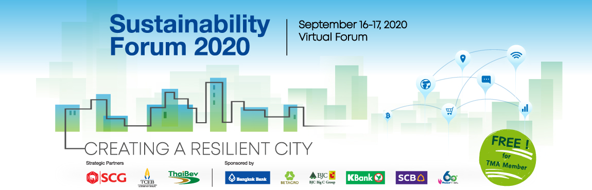 79 Sustainability Forum 2020: Creating a Resilient City (Free for TMA Member) No send SMS 2 Virtual Forum September 16-17, 2020 08.30-16.30 น.