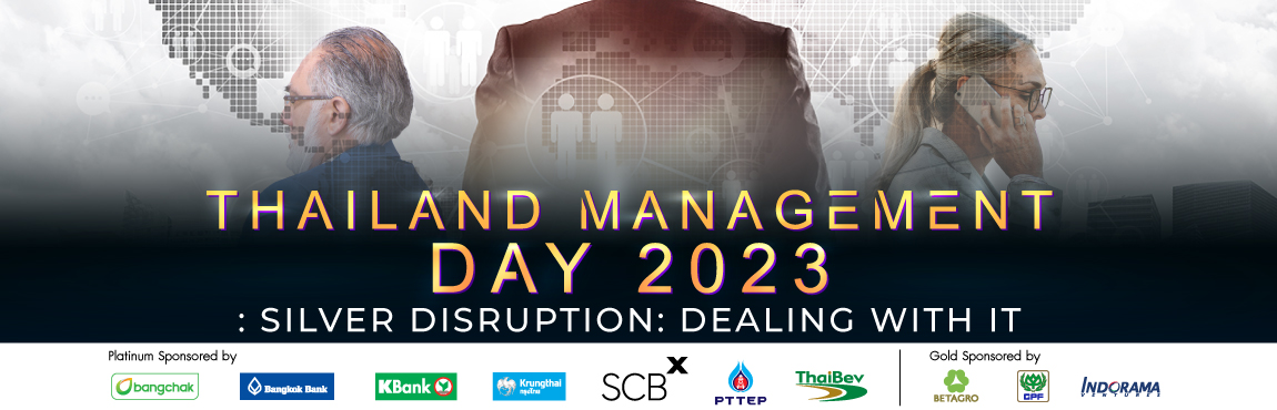 140 Thailand Management Day 2023: "Silver Disruption: Dealing with it" SMS Register 1 ณ ห้อง Auditorium ศูนย์การประชุม ซี อาเซียน (C asean) รัชดา วันพุธที่ 31 พฤษภาคม 2566 เวลา 08.30 - 16.30 น.