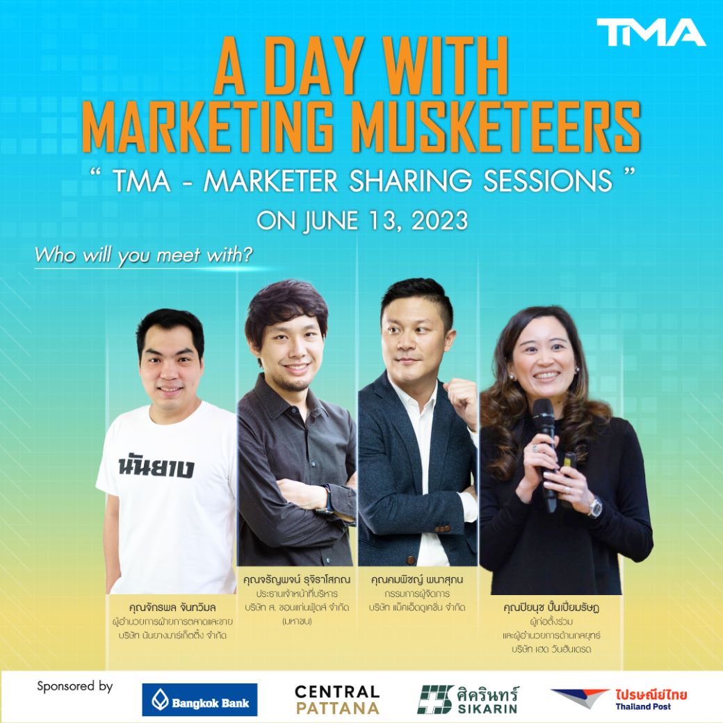 135 TMA - Marketer Sharing Session "A Day with Marketing Musketeers" No send SMS 1 Sindhorn Kempinski Hotel Bangkok วันที่ 13 มิถุนายน 2566 เวลา 13.00 - 16.30 น.