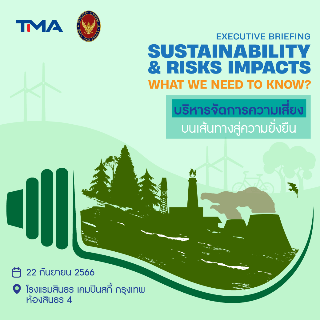 145 TMA Excecutive Briefing_Sustainability & Risks Impacts: What Do We Need to Know? SMS Register 1 โรงแรมสินธร เคมปินสกี้ กรุงเทพ ห้องสินธร 4 วันที่ 22 กันยายน 2566 13.30-16.00 น.